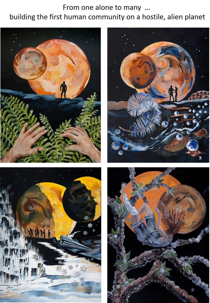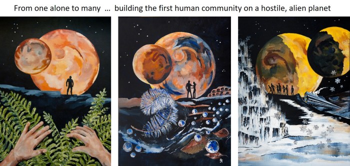 … On the alien planet Meniscus, against all odds, a small group of Humans works to forge a new life together. When a Dock-winder drone pays them a visit, Odymn and the Slain trek along the heights of The Fault, to make certain the community is not in danger of invasion. They find a new way to scale The Fault and a perfect location for building a new village. Matters are complicated when Odymn is injured on a parkour run and the Slain’s former girlfriend joins the group. Faced with a dangerous journey through the Themble Wood and the hardships of building a new community, are the Humans in more danger from themselves, the alien landscape, or their Doc-winder overlords?