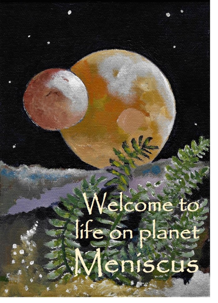 Alexandra Tims is a botanist, writer and artist living in rural New Brunswick, Canada. Her first five books in the Meniscus series, Meniscus: Crossing The Churn, Meniscus: One Point Five – Forty Missing Days, Meniscus: South from Sintha, Meniscus: Winter by the Water-climb, and Meniscus: The Village at Themble Hill were published with CreateSpace in 2017 and 2018. She has also published two books of poetry, within easy reach (2106) and in the shelter of the covered bridge (2017), under the name Jane Spavold Tims (both with Chapel Street Editions, Woodstock). In 2016 she won the Alfred G. Bailey Prize in the Writers’ Federation of New Brunswick Writing Competition for her manuscript of poems about bird calls. She is a fan of science fiction – books, television and film, including Star Trek, Stargate and Firefly. Her websites feature her drawings, paintings and poetry.