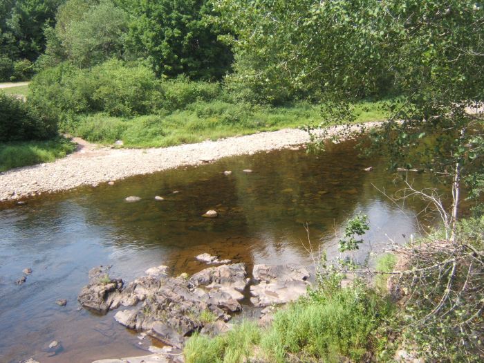 Up-river of the Smyth Bridge is a gravel beach and water for wading and swimming.