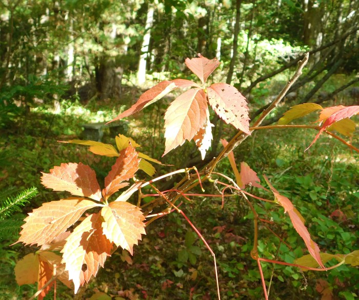 the red of the Virginia Creeper leaves …