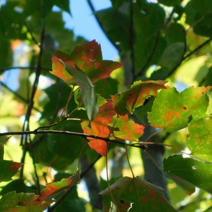 October and autumn are upon us. I took a walk around our yard this morning and although my camera was not behaving (I bear no responsibility), I can show you some of the ‘reds’ I saw.