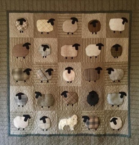 So this Christmas I decided a cute lap-quilt with a sheep motif would be nice for the easy chair near the draft-stopper. So I looked on-line and ordered this cute little quilt.