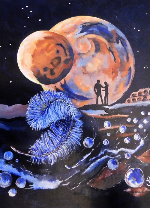 A poor photo of the painting I did for the cover of Book Two – Meniscus: South from Sintha