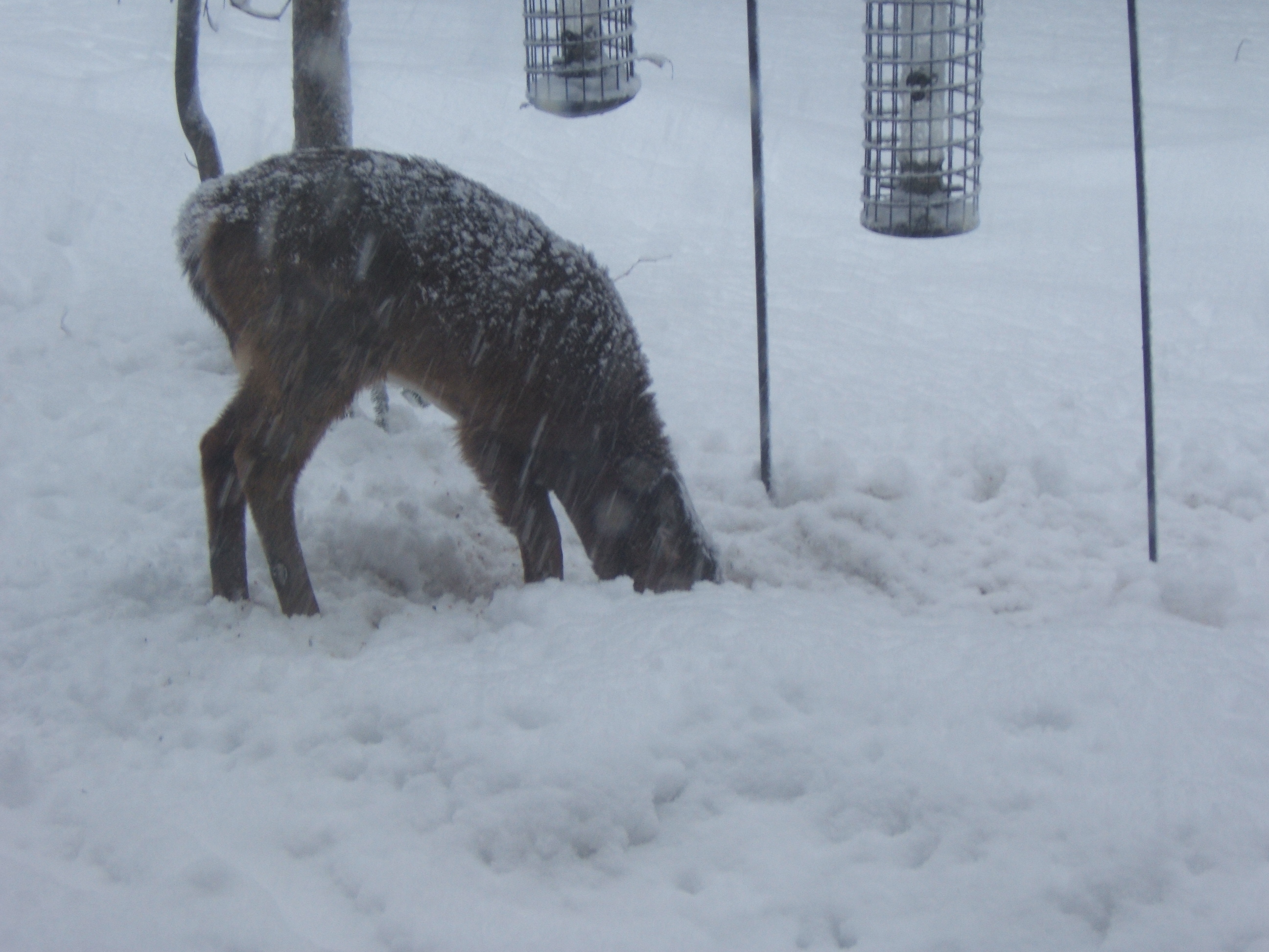 Last week we bought a new feeder, so I could have both sunflower seeds and the mixed seeds at the same time. I filled both feeders when we arrived home, later in the afternoon. The next morning, not a seed in either feeder. By the tracks all around, I know a deer cleaned out both.