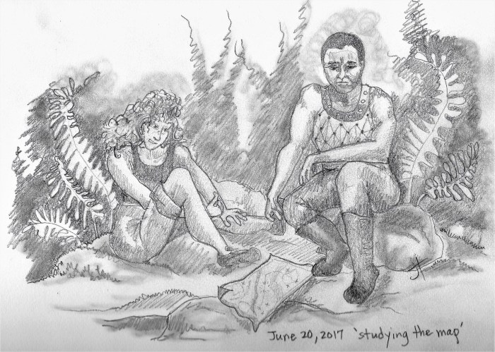 With a few minor edits, this drawing will accompany this part of the story in The Village at Themble Hill. The Slain and Odymn will have some dangerous adventures as they travel along The Fault.