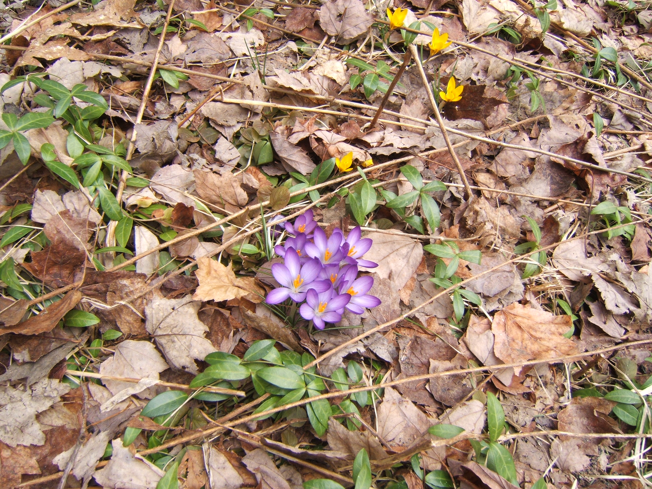 The crocuses we have now are bright purple and yellow. I planted them years ago, when my son was young. They have endured all these years and have even spread to other, distant parts of our property. I think the squirrels must dig them up, rebury them and forget where they have stashed their treasure.