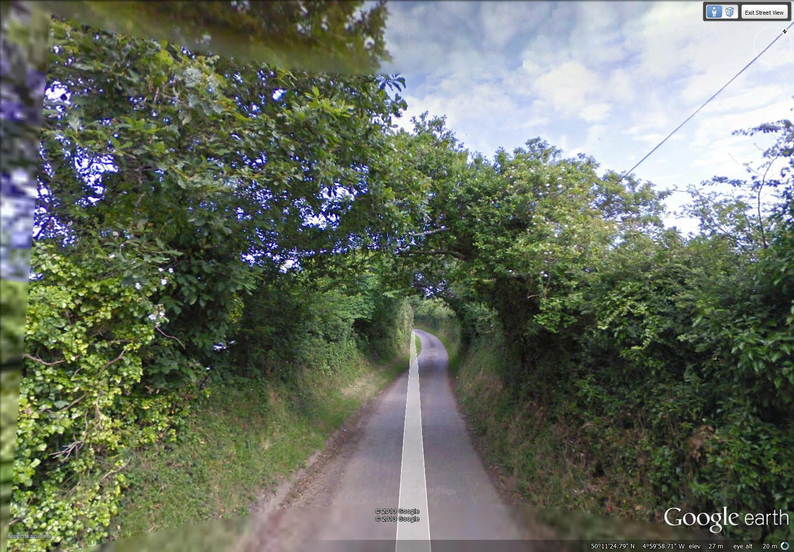 For eight months now, I have been encouraging myself to exercise by pretending to cycle far from home. I use Street View in Google Earth to explore the countryside in parts of the world where I have never been except in imagination. From January 30, 2013 to June 28, 2013, I cycled virtually in Central France, from Lusignan to Ile de Ré. Since July 1, 2013, I have been following the coast in Cornwall, beginning in Rame. In each post, I have presented Street View images I have ‘seen’ along the road. I have also shown you the drawings and watercolours inspired by the images.