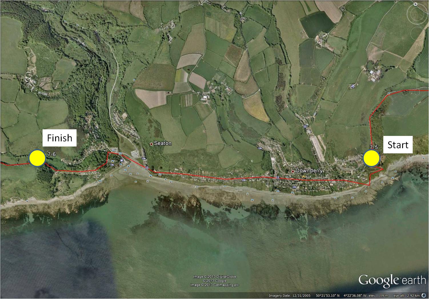 I decided to begin just west of Plymouth, and I plotted ten, 3 km trips to begin. Beyond that is a more than 300-km-distance around the entire Cornwall coast.