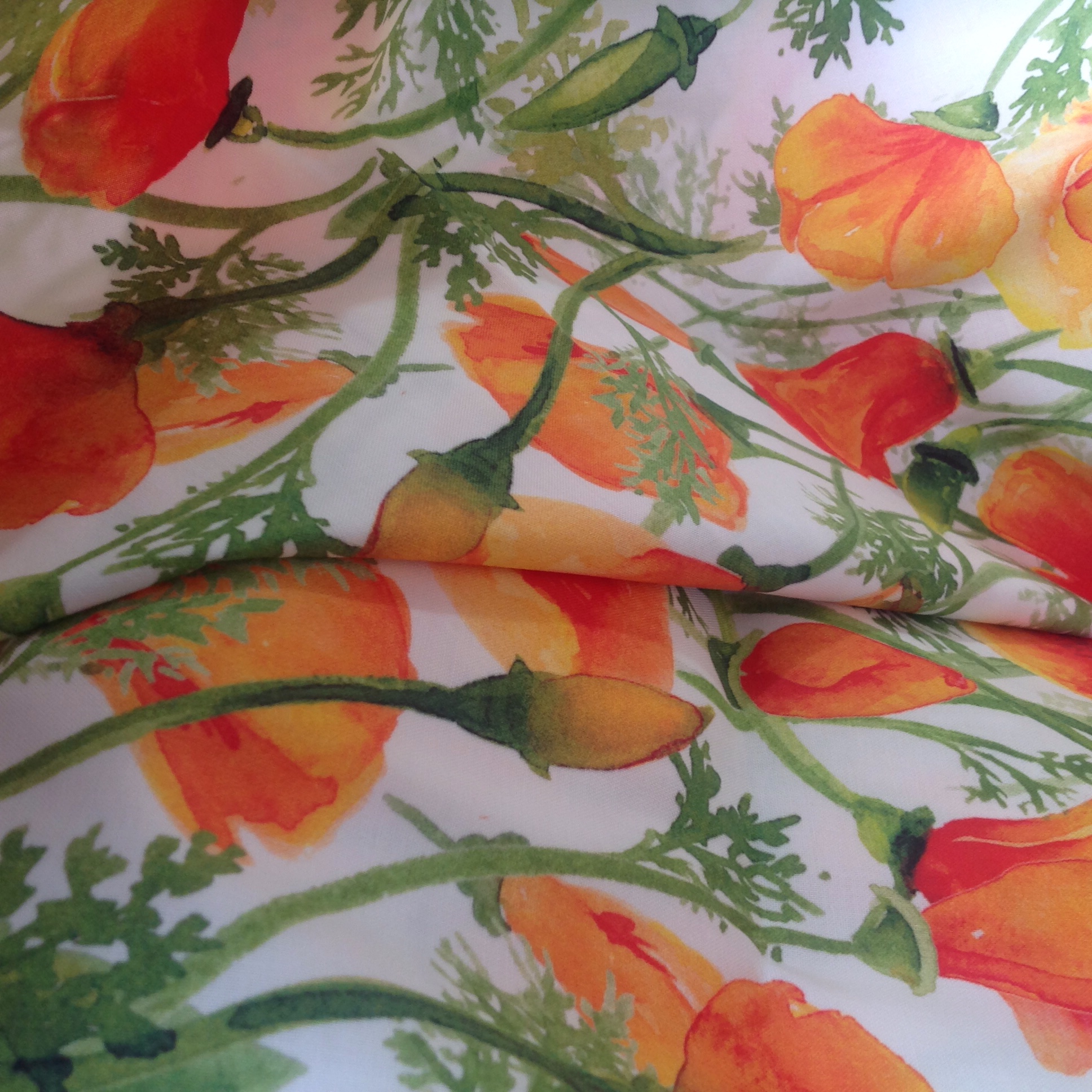 Meanwhile, I was planning to make a small quilt for our bedroom which is decorated with a poppy motif. I had some of the fabric, left over from other projects. I looked on- line and found the perfect fabric, in ready-to-quilt 5″ by 5″ squares. 42 squares, just enough for my quilt. Disappointment number 2. The fabric, when it arrived was beautiful. But, only 8 of the 42 squares were in the poppy motif! Grrrrr.
