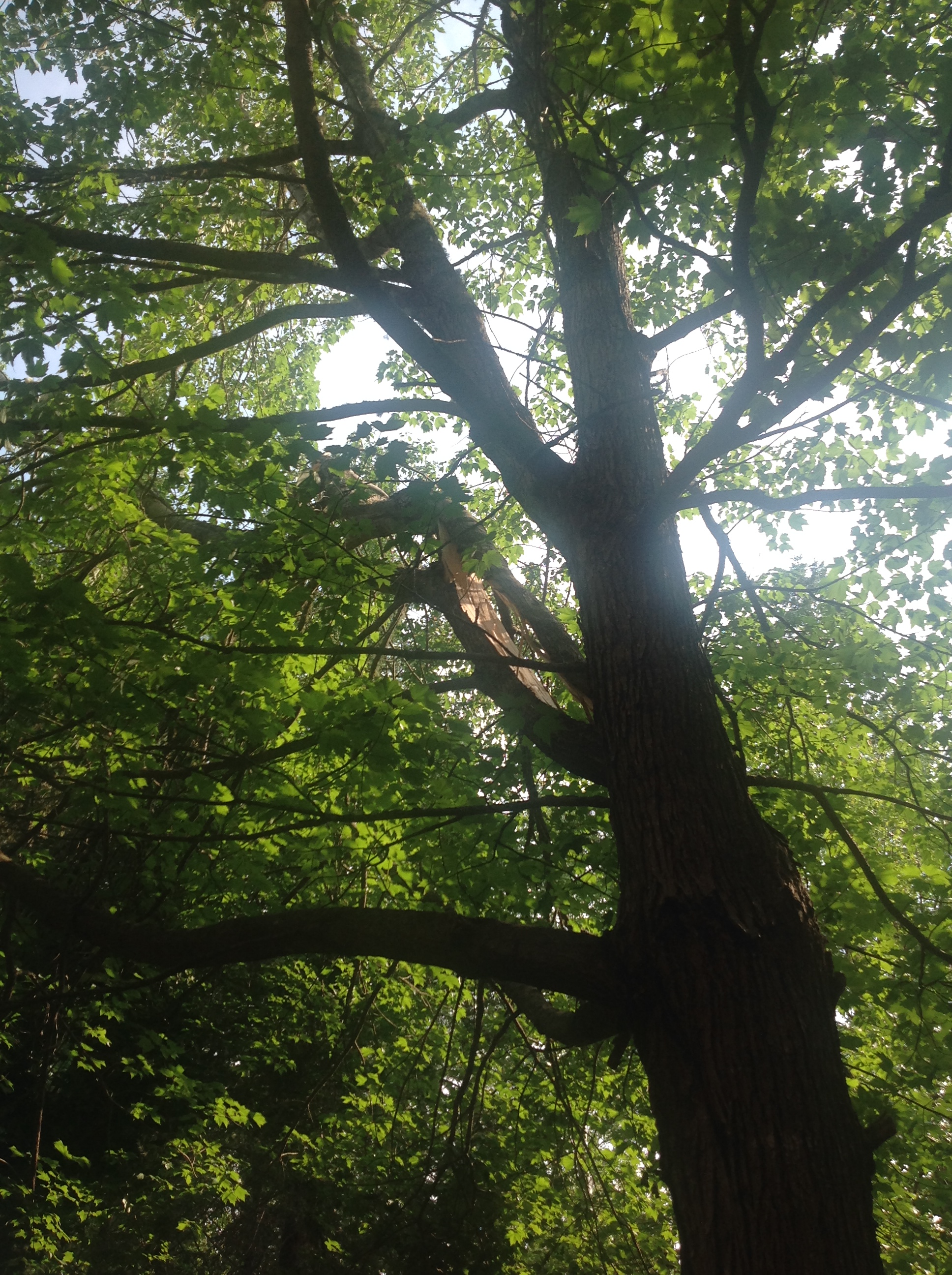 After the storm, we congratulated ourselves on how few of our trees were damaged. Then I looked out of the den window and saw – the winds had not spared the red maple – one of the big branches had a wide split in the wood.