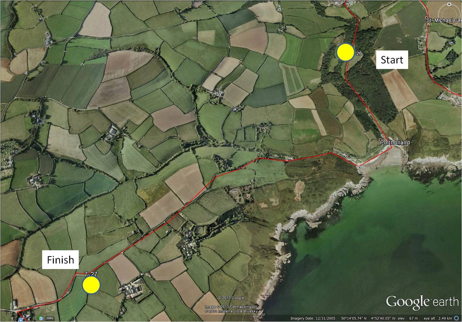 Today, I cycled very carefully along the roads near Portholland, watching for falling rocks …