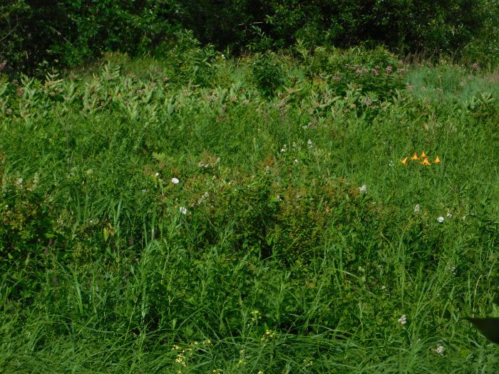 After a few years of abandonment, wildflowers and other plants that colonize disturbed or waste areas gradually take over. In our travels we have seen bedstraw (Galium spp.), spreading dogbane (Apocynum andossemifelium) and other invasives.